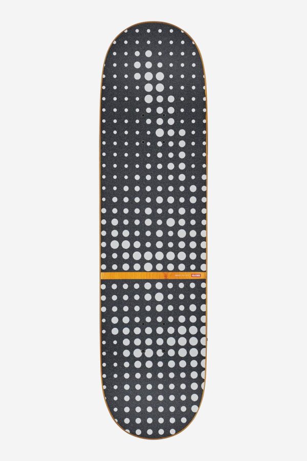 The G2 Dot Grain in colour Peace is a 8,5″. Featured art and aesthetic details on the best complete money can buy. It is made of Resin-7 hard rock maple with a full concave. It features 6.0” Tensor Alloys trucks with hollow kingpins with 55mm 101a wheels. It comes with split black griptape with print and Dye washed veneers with Raised ink art.