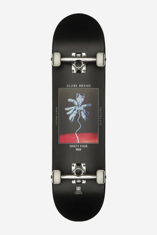 The G1 Palm Off street complete in color Black is a classic resin-7 complete with ABEC-7 bearings with a size of 8.0″ x 31.6″ x 14″WB. It features a Resin-7 hard rock maple base with a full concave. This Globe skateboard has 5.25″ Tensor Alloy trucks and 52mm 99a wheels. The top deck is a black grip tape.