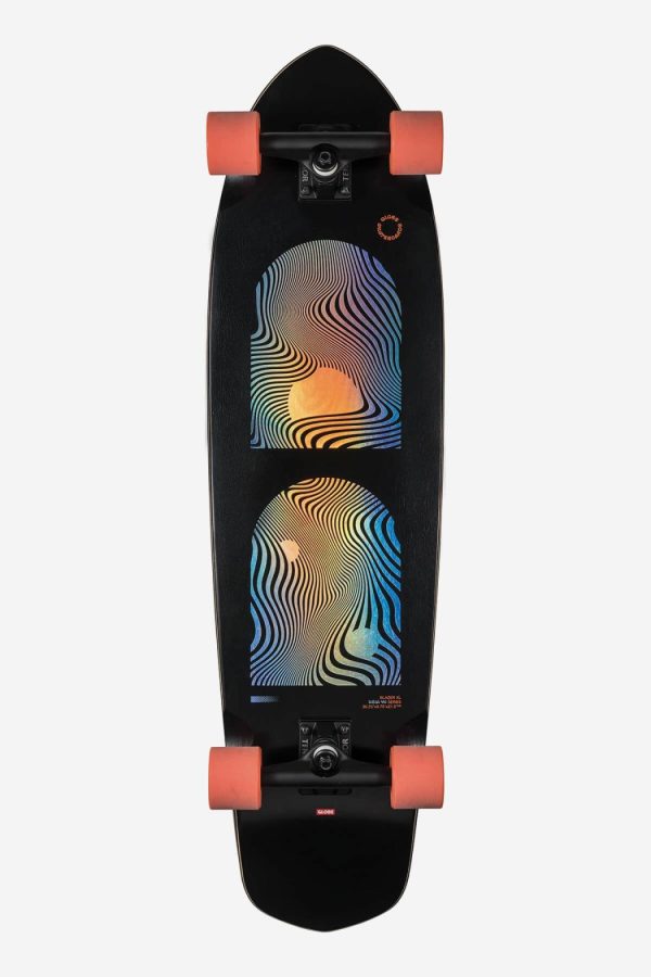 Longer length diamond tail cruiser with soft conical wheels. The Blazer XL in Black/Orange is a 36″ bigger-size cruiserboard with mellow concave. The deck is constructed from Resin 7 hard rock maple and features colourful, prism foil based art. This large-size cruiserboard also features 6.0” Tensor alloy trucks with grade-8 kingpins and high-rebound urethane bushings. Globe’s 62mm 78a high-rebound urethane conical cruiser wheels are sticky enough to hold turns and slide while allowing for a smooth and stable ride.