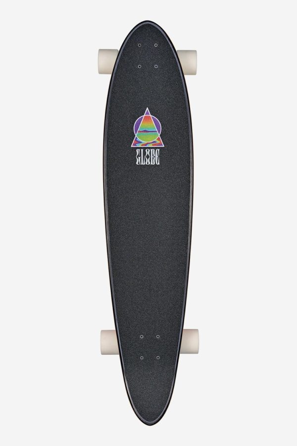 Classic pintail longboard with a kicktail. The Pinner Classic in size 40 colorway Yer Playin’ features deck constructed from Resin-8 hard rock maple with Mellow concave with kicktail. It also has 180mm Slant reverse kingpin trucks and 65mm 78a Conical Cruiser wheels with Black griptape with print. Neon artwork with prism foil details. Featured artist Emily Lynn Perelman