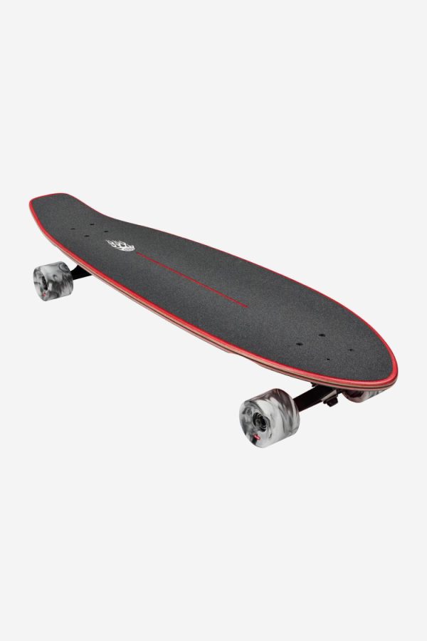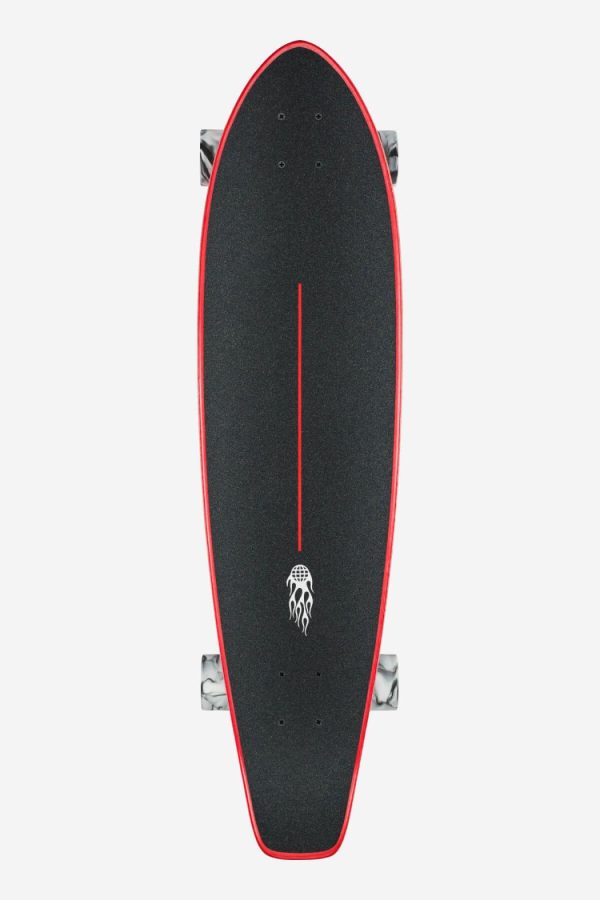 Long wheelbase cruiser shape with kick tail. The All-Time 35″ Longboard in Red Flames is constructed from Resin-8 hard rock maple, mellow concave with kick tail and die-cut grip tape with print.