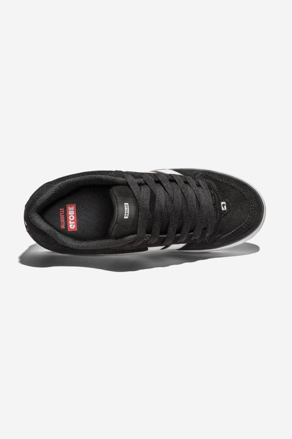The Encore-2 in Black/White is a classic vulcanised skate style with twin design stripes. made of shaved suede. It features a Globe’s S-Trac ™ sole pattern with triple-stitched toe cap.